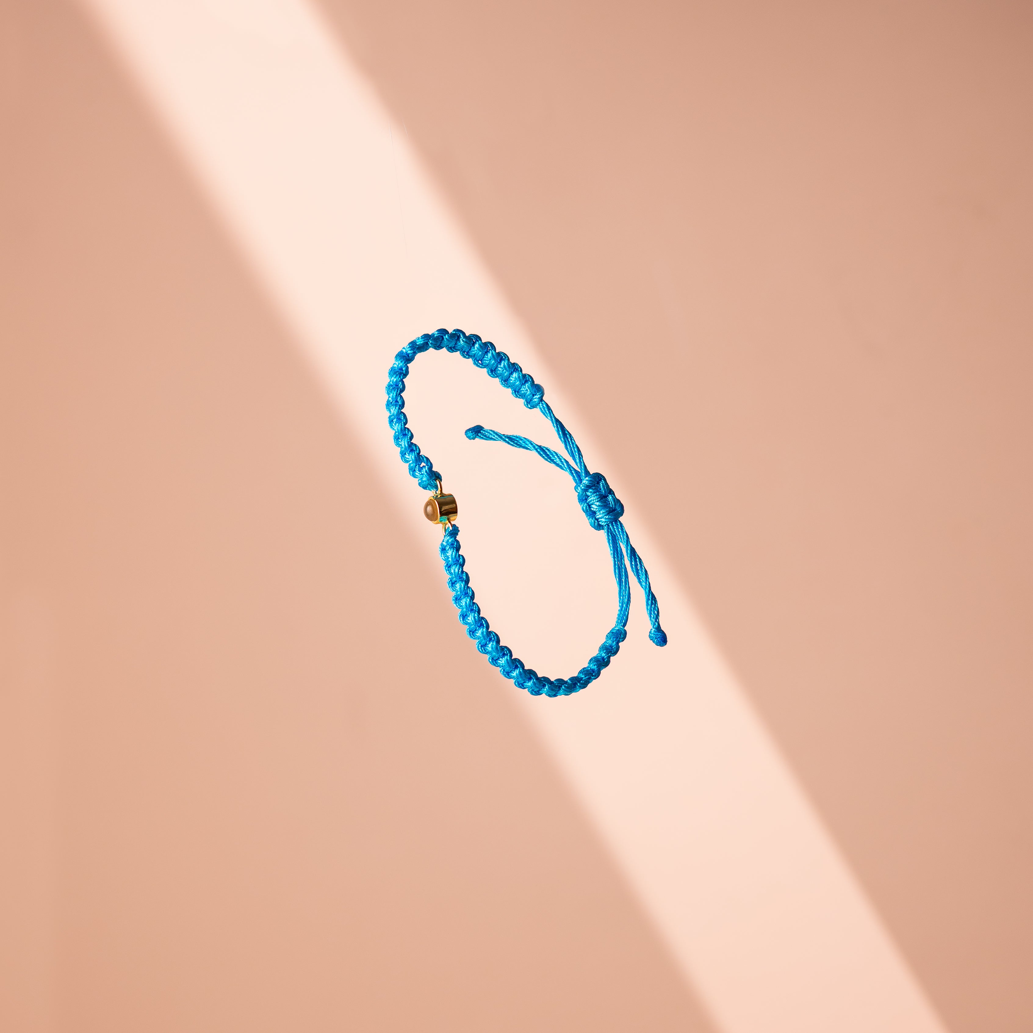 Handcrafted to order with a Nylon and Polyester Woven rope mixture, with a 18k Plated projection orb.
