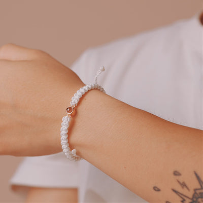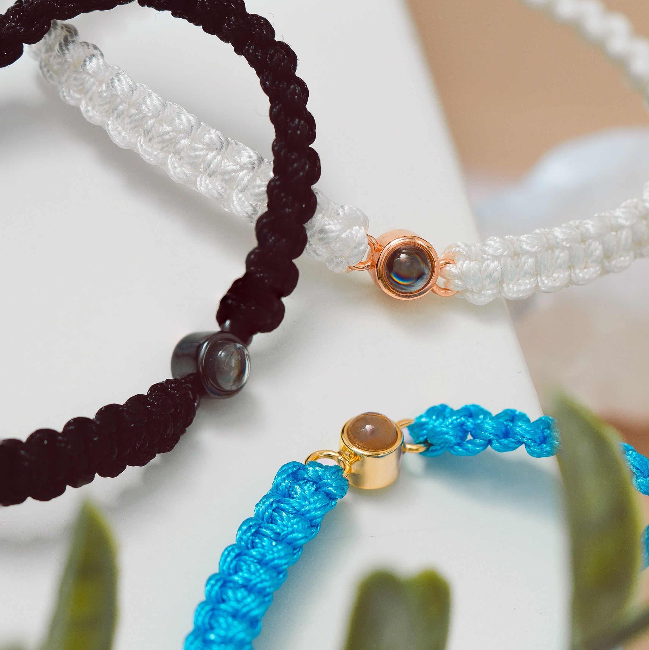 Handcrafted to order with a Nylon and Polyester woven rope mixture, with a Sterling Silver plated projection orb.