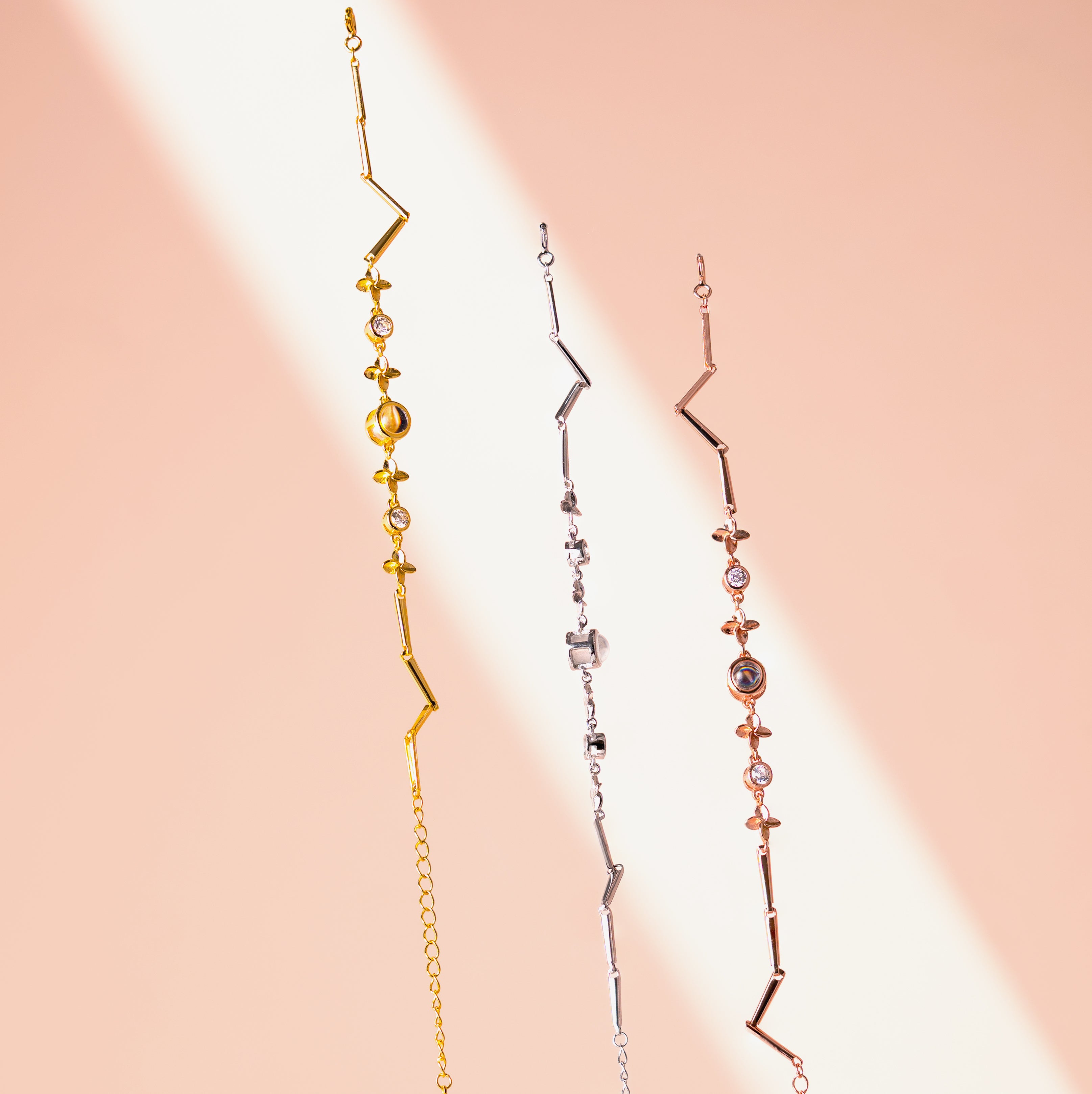 Handcrafted in S925 Sterling Silver, 18k Yellow Gold. or 18k Rose Gold. Studded with Cubic Zirconia.