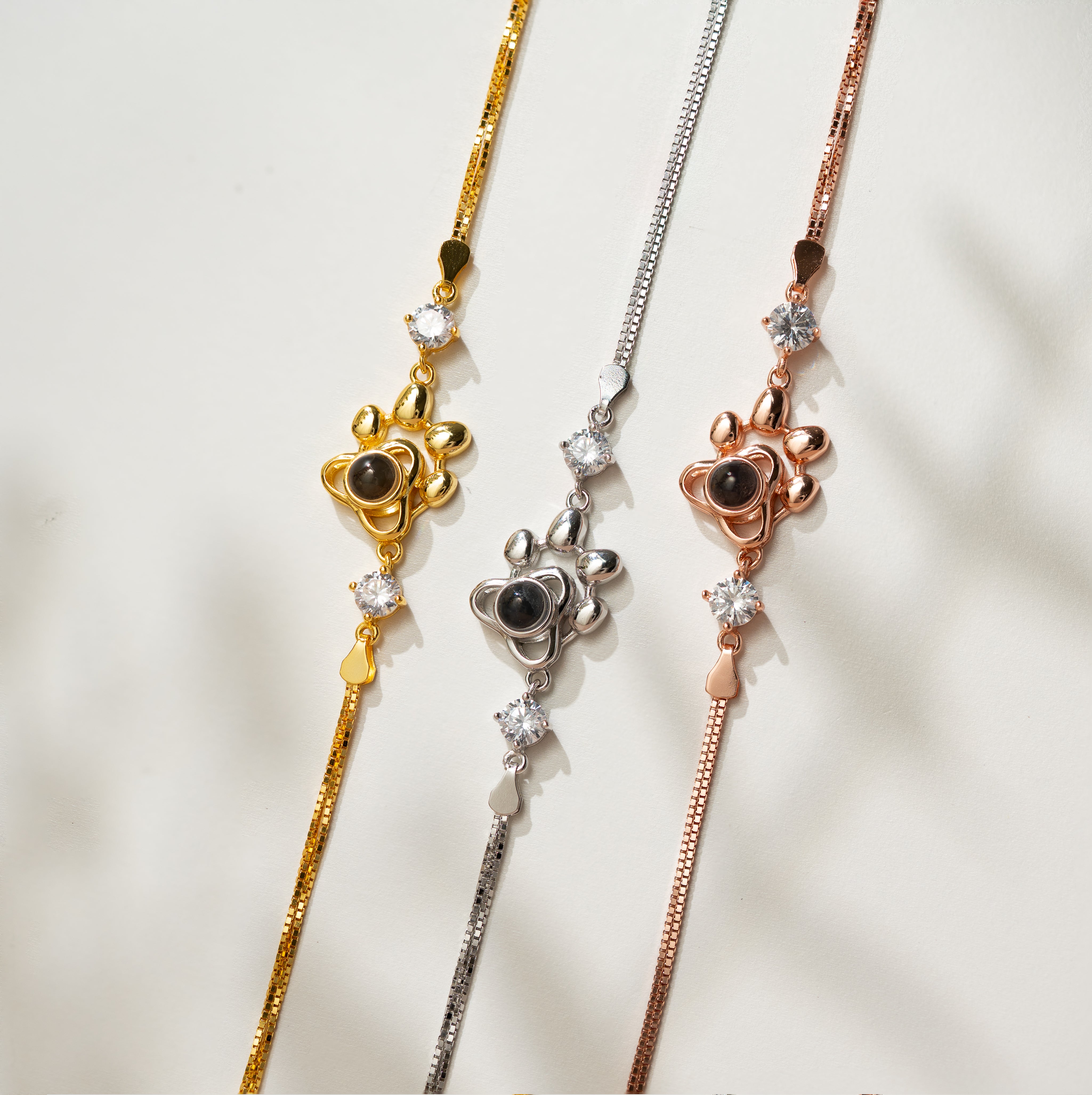 Handcrafted in Sterling Silver, Yellow Gold or Rose Gold plating with a copper base. Studded with Cubic Zirconia.