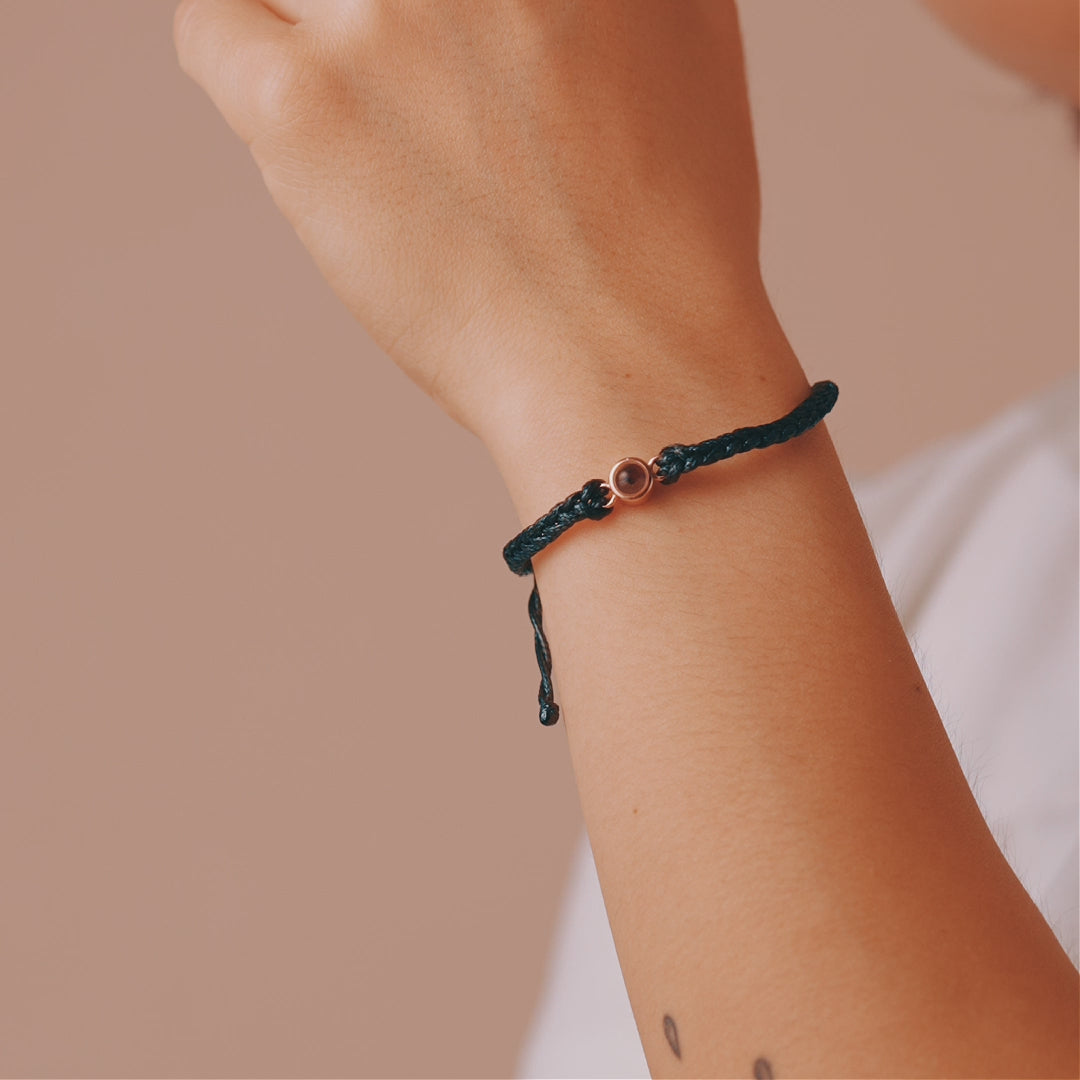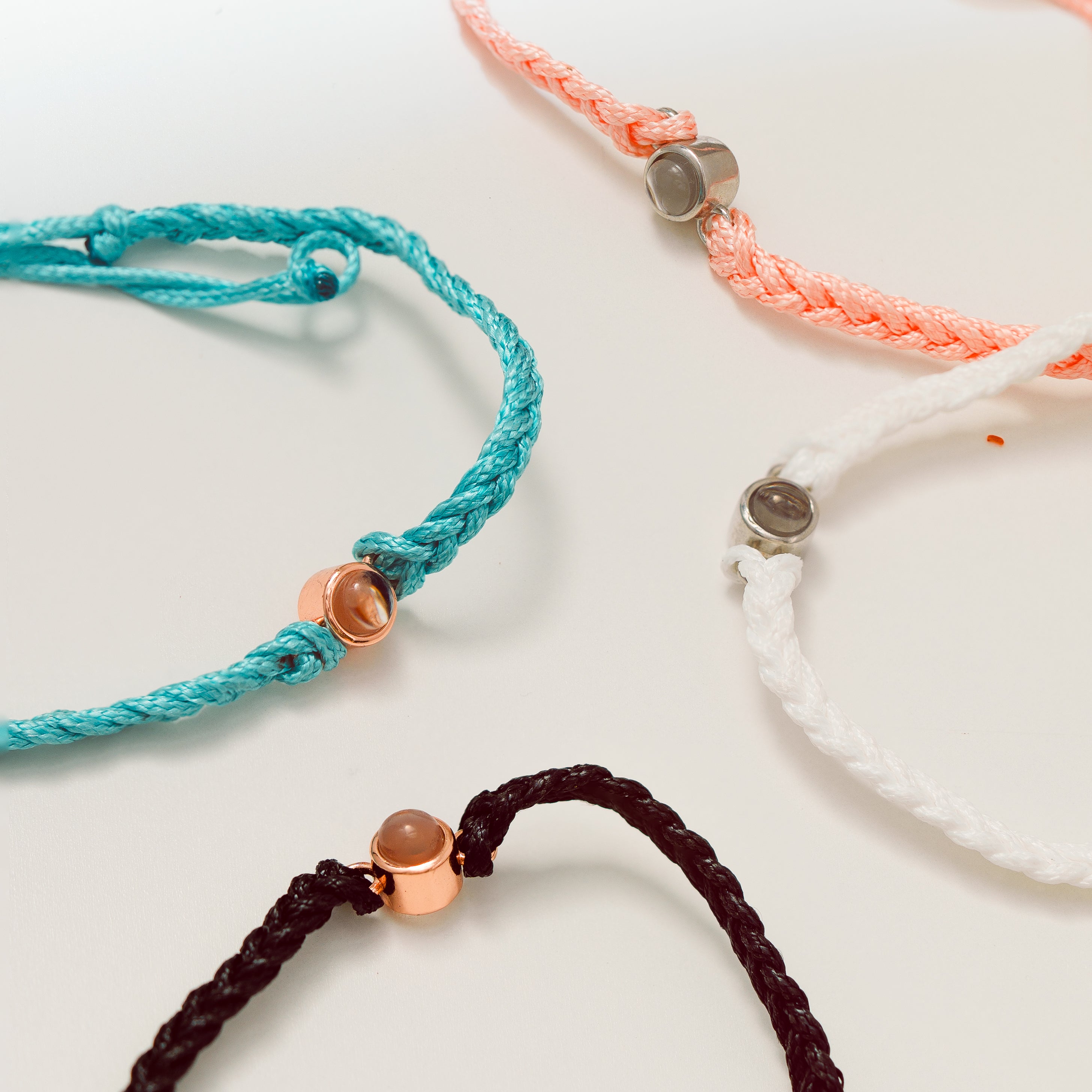 Handcrafted to order with a Nylon and Polyester Woven rope mixture, with a Sterling Silver plated projection orb.