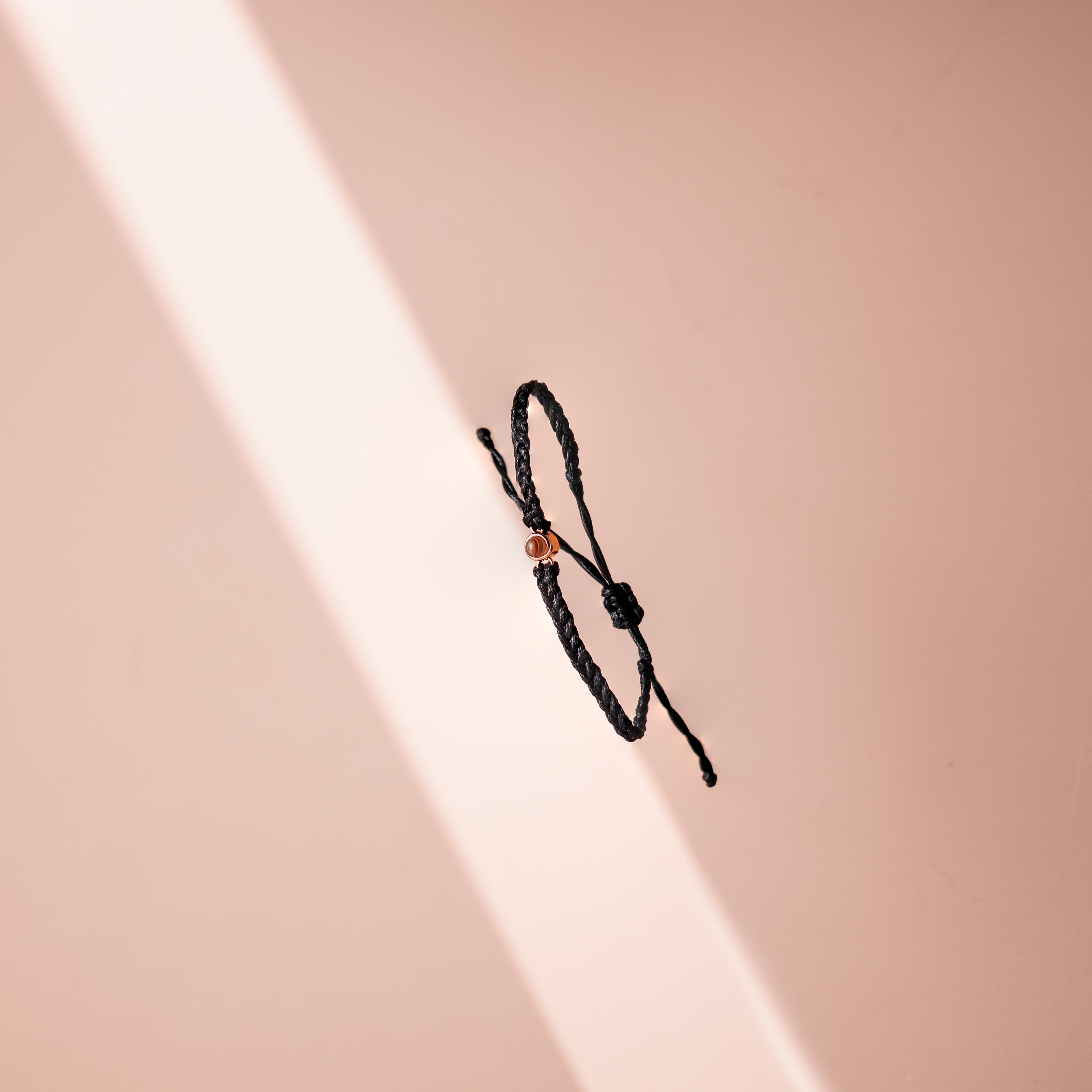 Handcrafted to order with a Nylon and Polyester Woven rope mixture, with a 18k Plated projection orb.