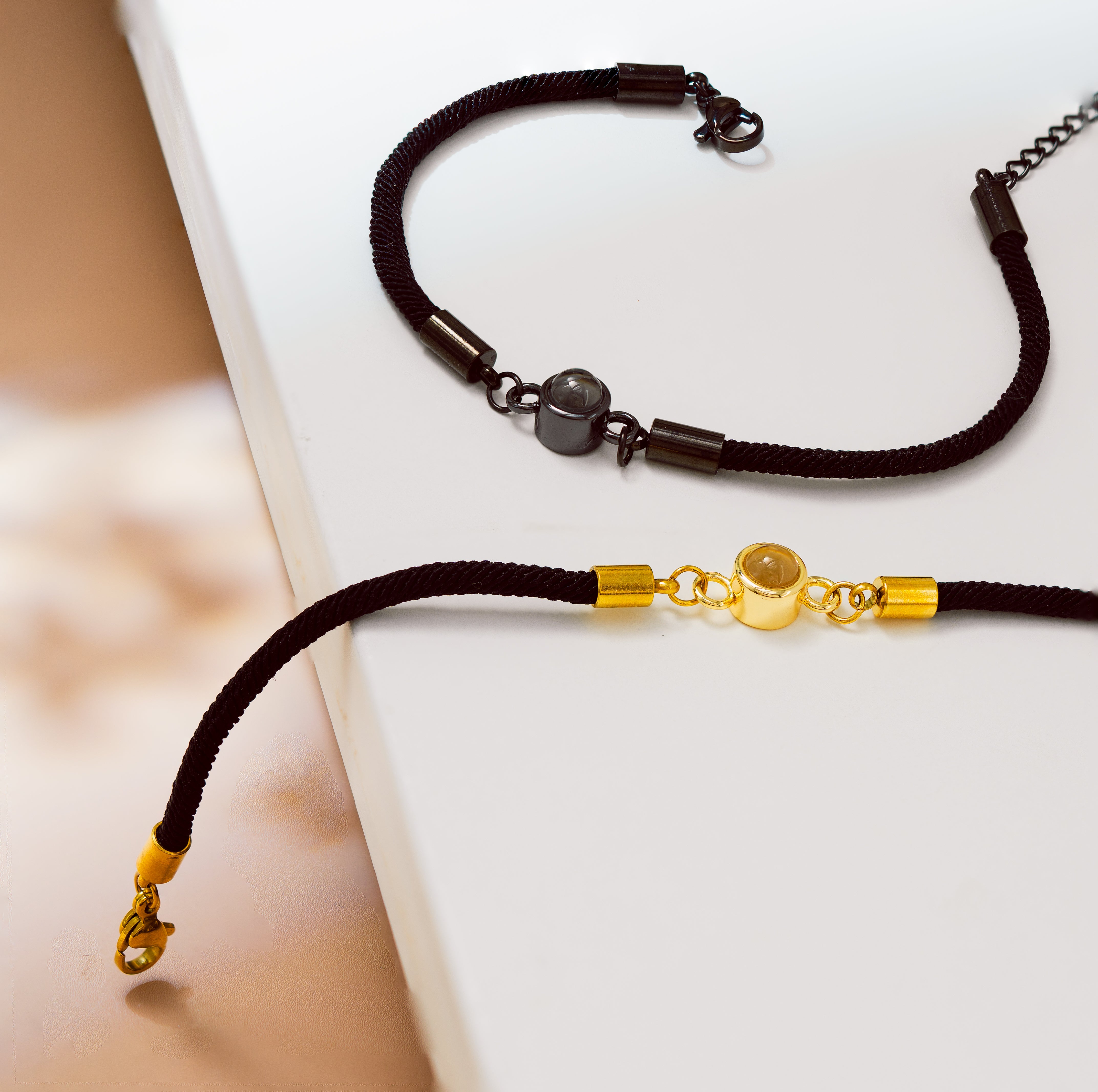 Handcrafted to order with a Nylon and Polyester Woven rope mixture, with a Sterling Silver plated projection orb.